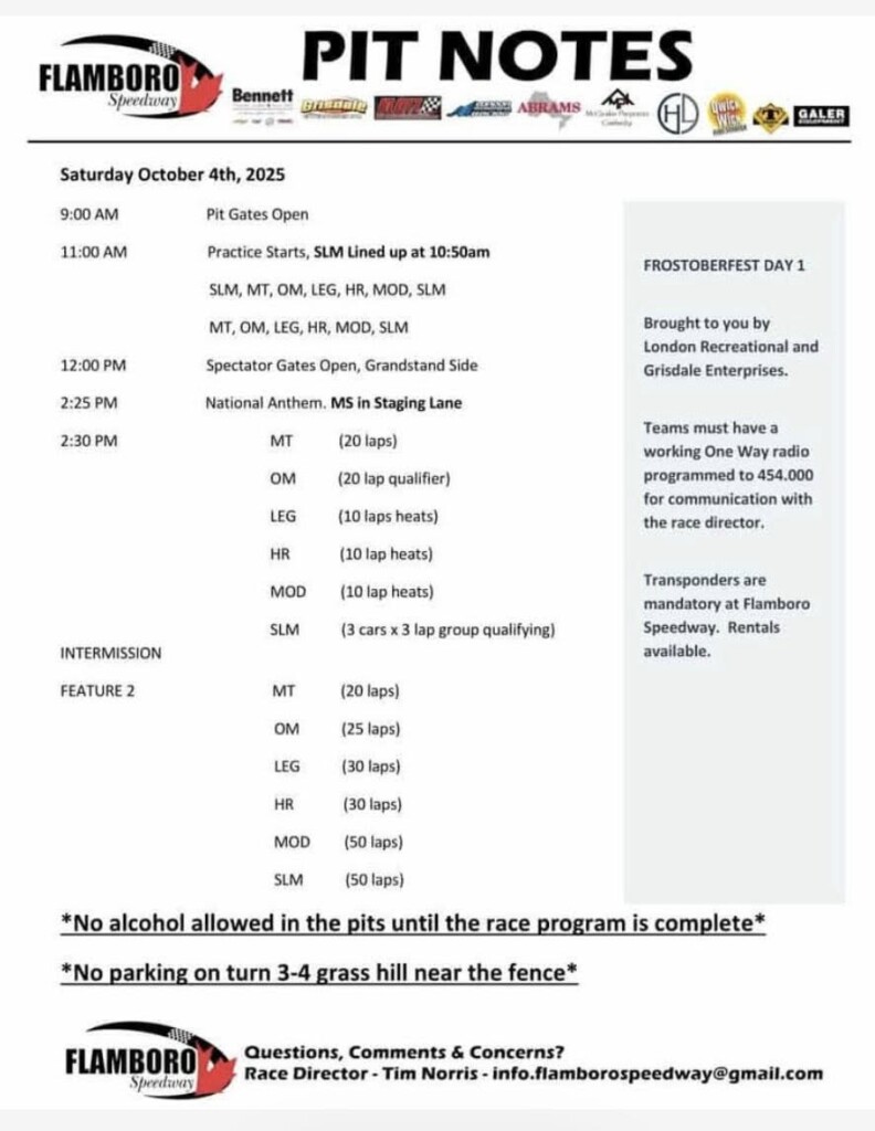 by Great Lakes Legends Series October 4, 2025 GLLS Updates RACE DAY Great Lakes Legends Racing Series…. Powered by Freshstone Brands will be at Flamboro Speedway tomorrow for their Championship Race. Find the complete schedule for October 4 below: